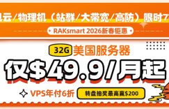 RAKsmart新客三重福利 全场6.5折新购优惠 满$50-$10/满$100-$25 独服/VPS免费试用